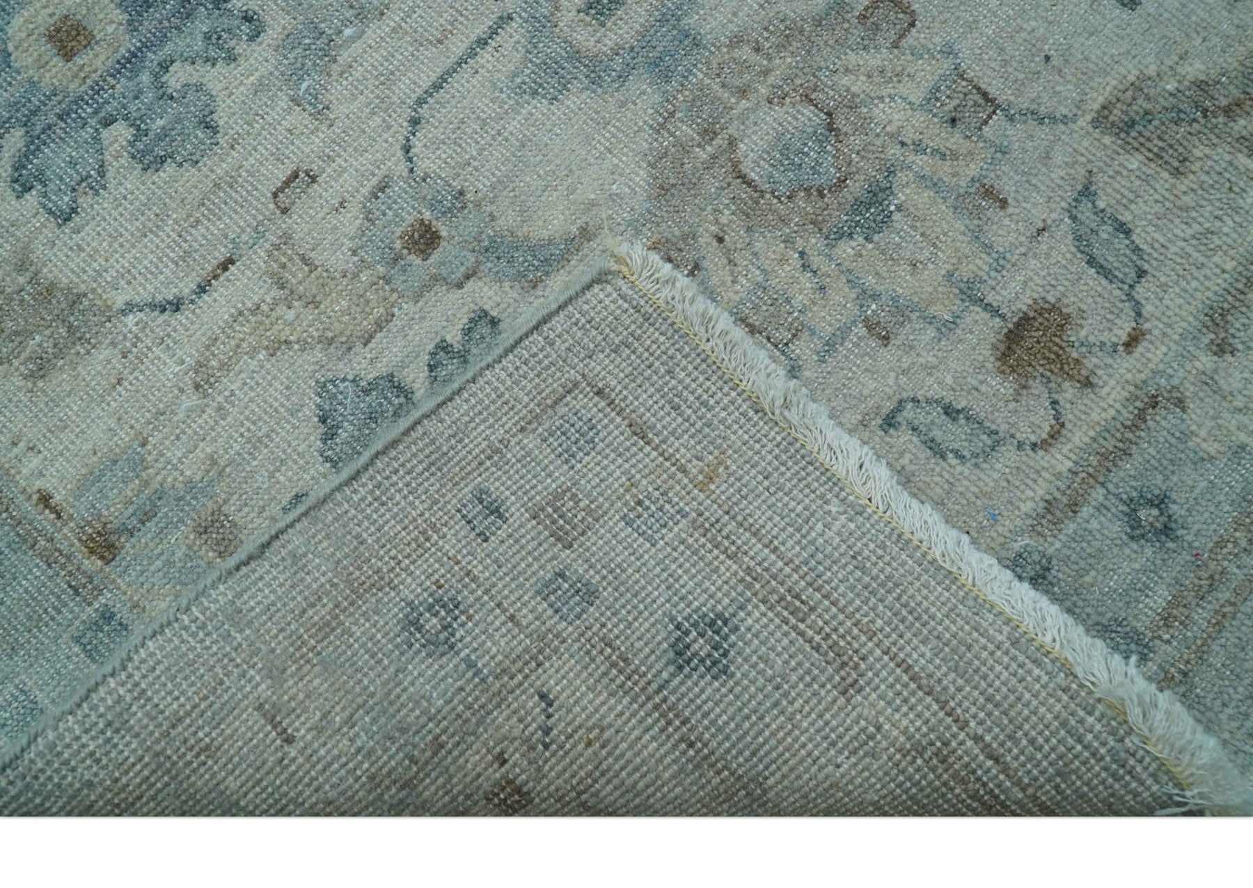 Traditional Turkish Design Blue And Beige 10x14 Hand Knotted Wool Area Rug