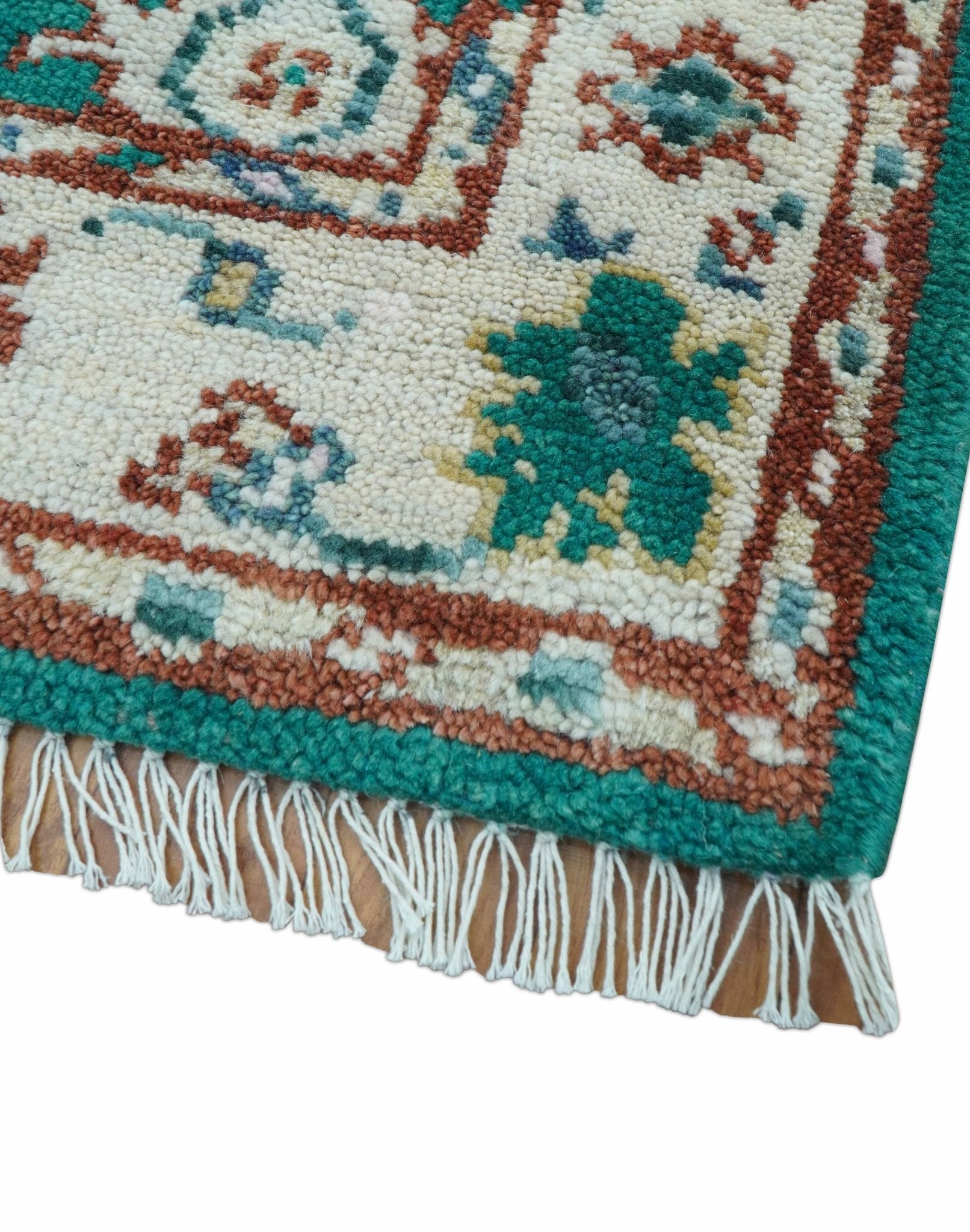 Traditional Design Teal Hand knotted 4x6 Wool Area Rug