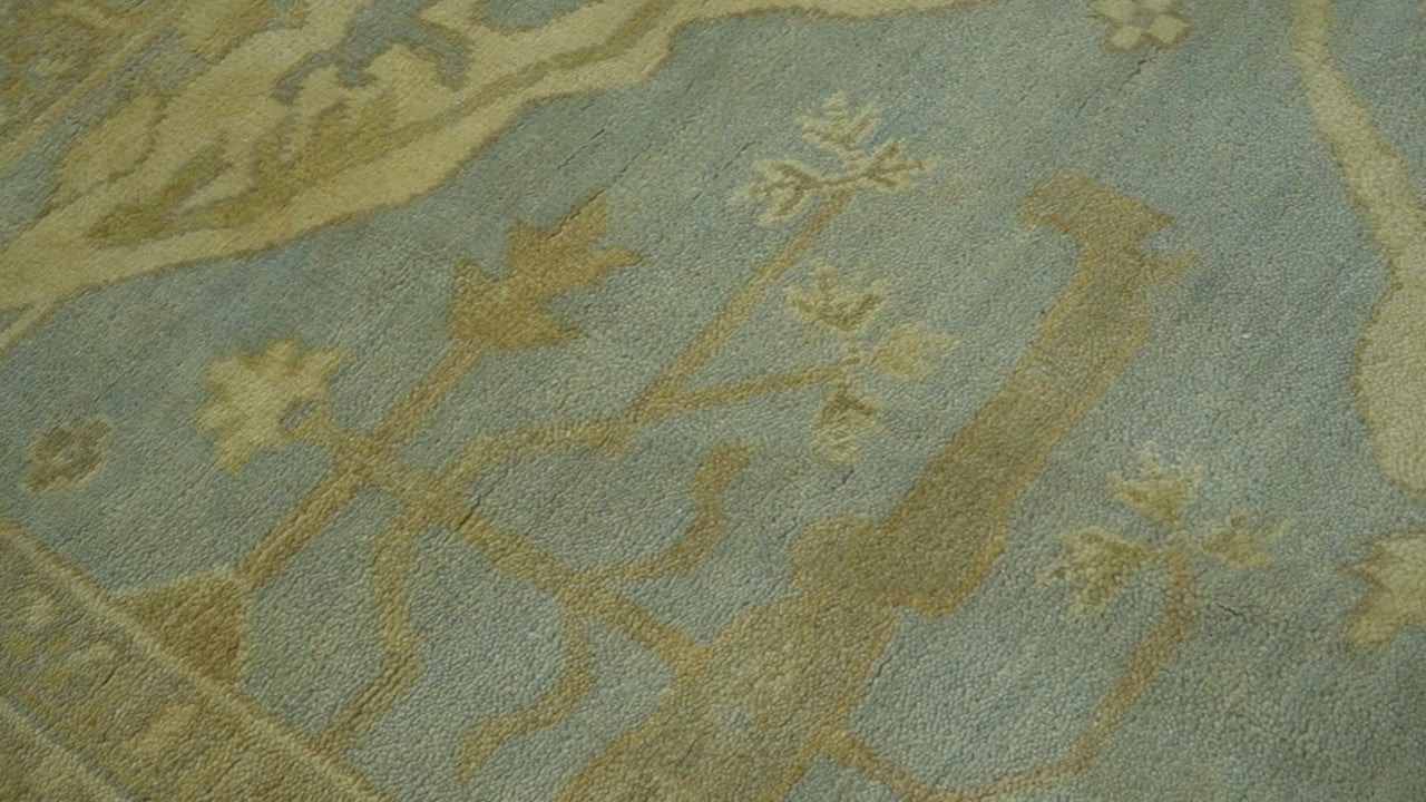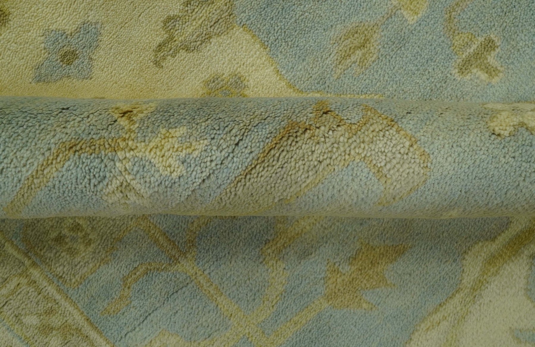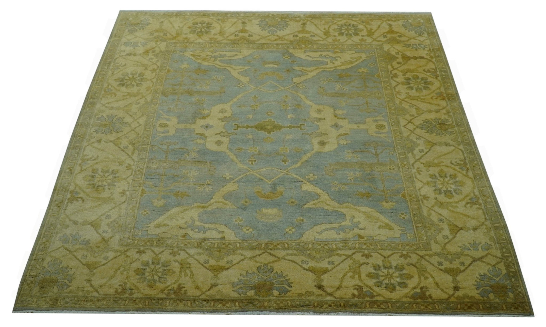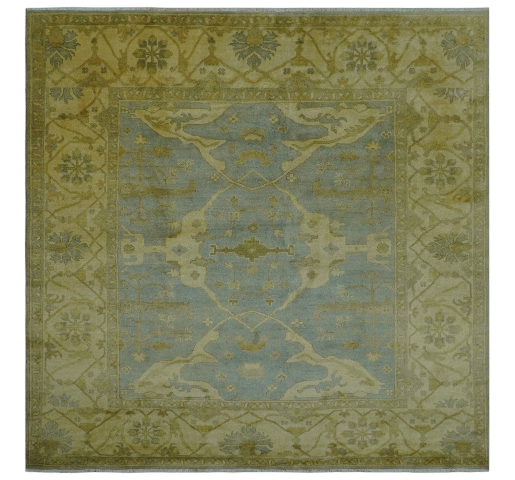 Traditional Oushak Design Blue And Beige hand Knotted 8x8 Wool Area Rug