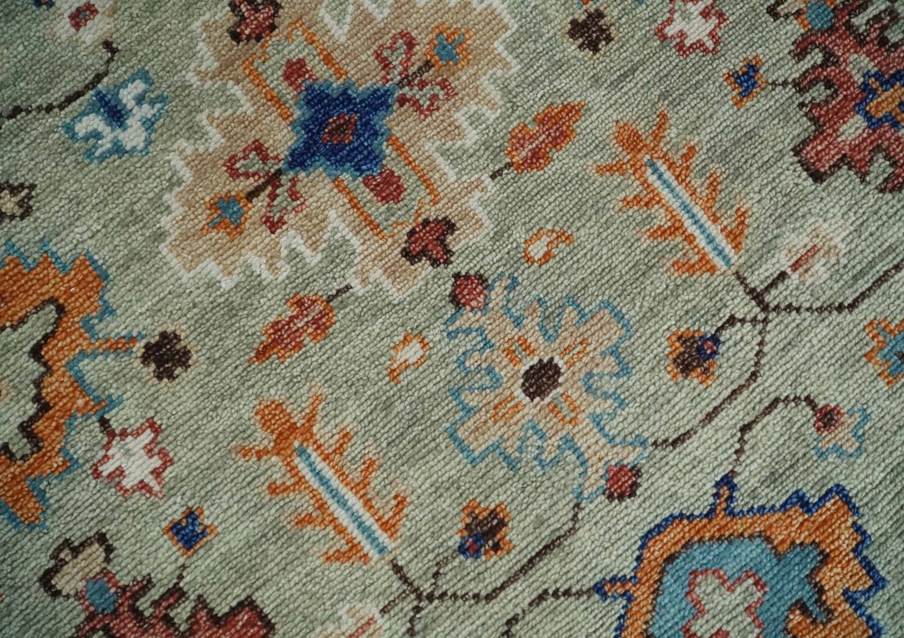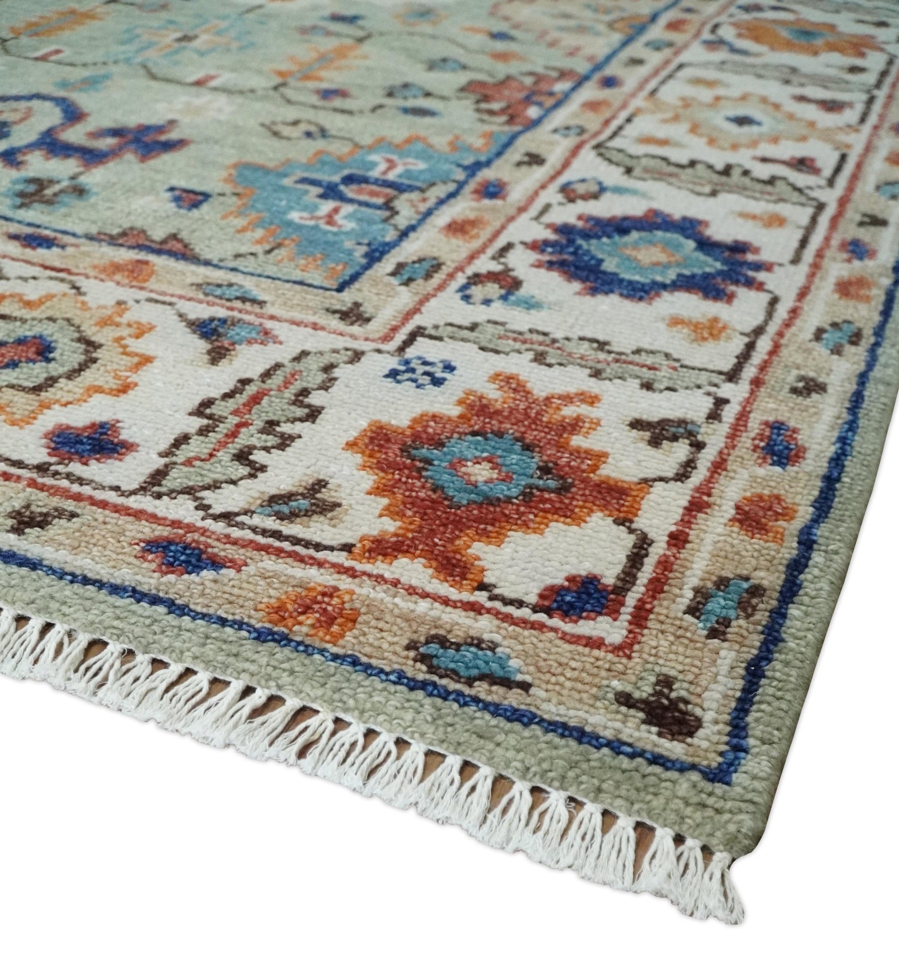 Turkish Knot Antique Green and Ivory Traditional Multi Size Hand knotted Oushak Rug