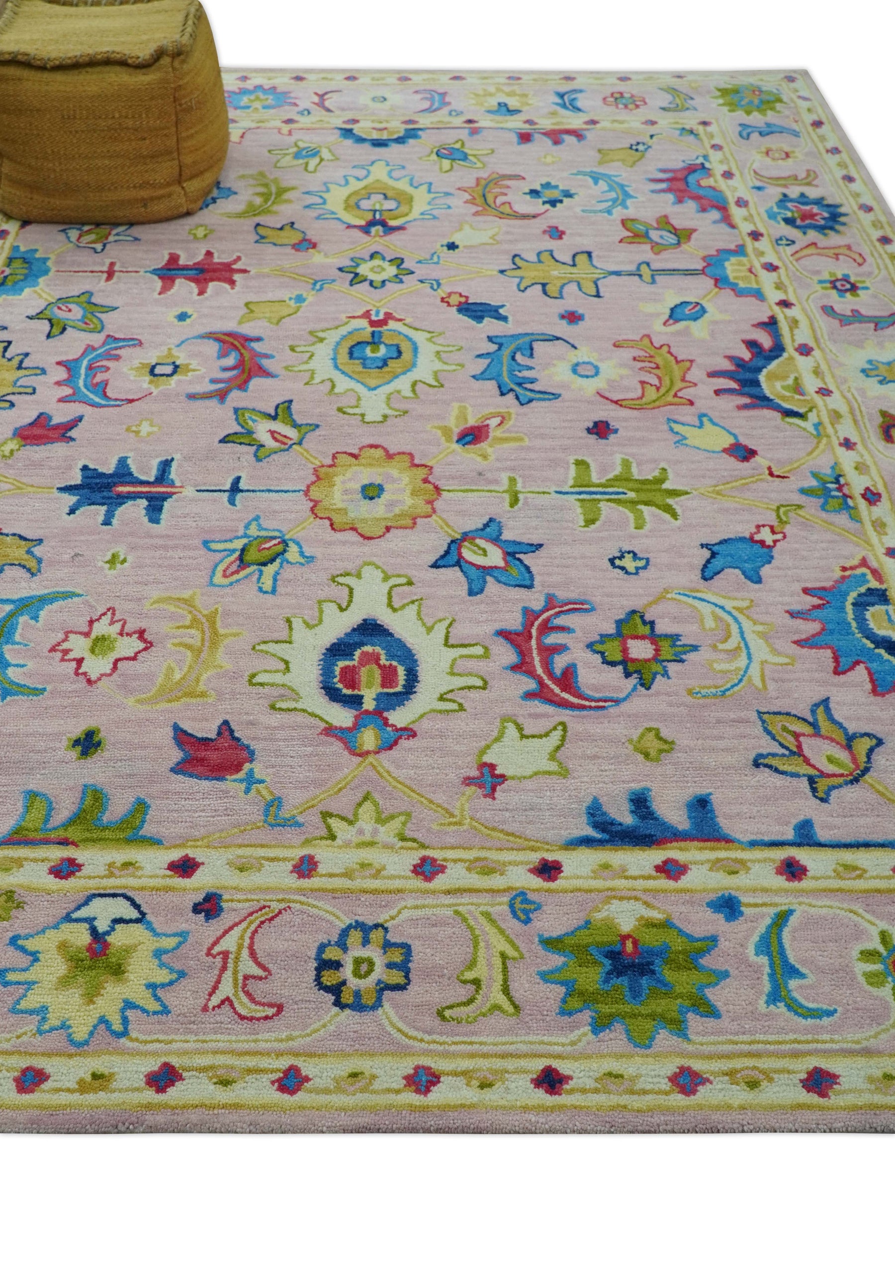 Vibrant Colorful Pink, Olive and Blue Oriental Oushak Hand Tufted Multi Size area rug
