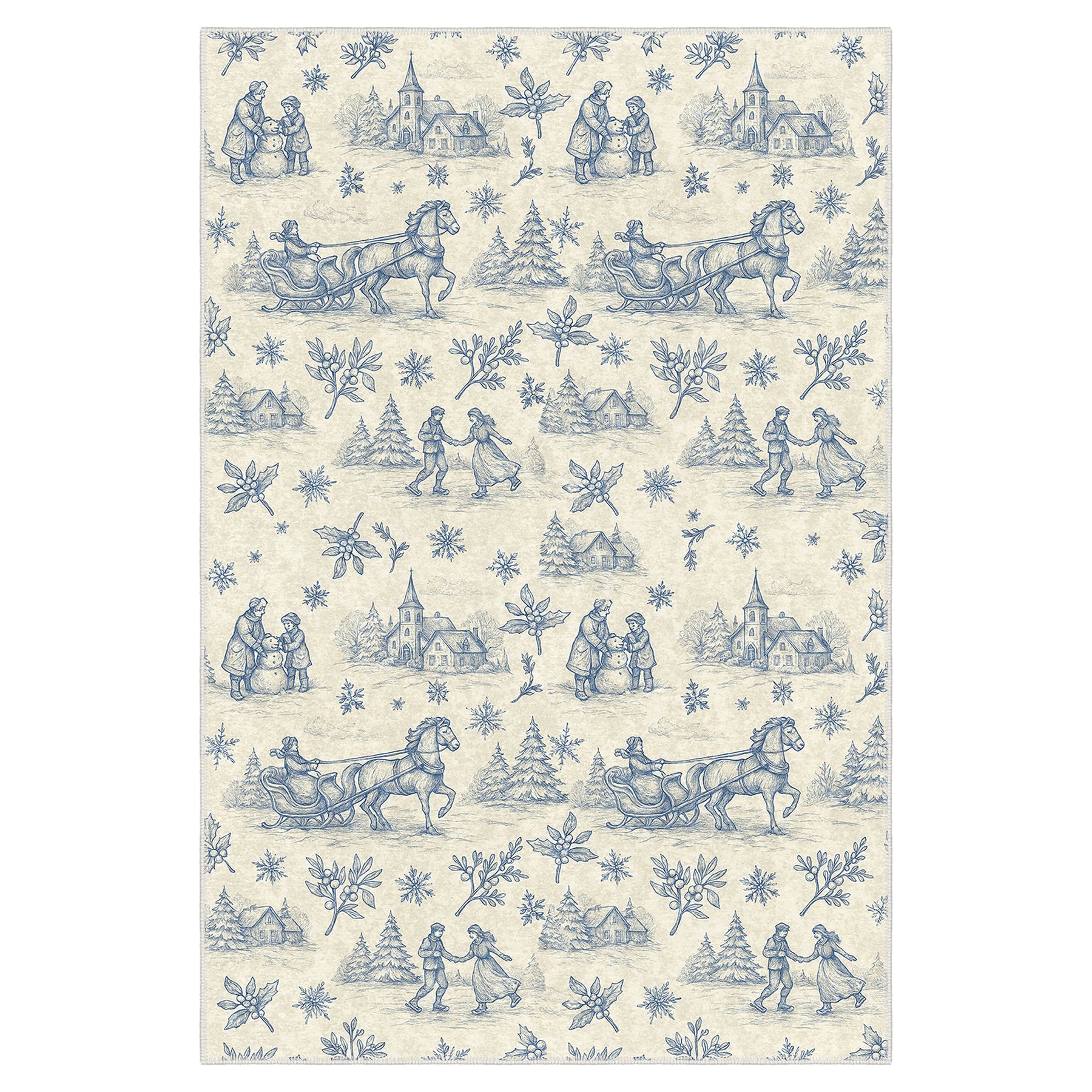 Zavora Christmas Beige Machine Washable Cotton Area Rug