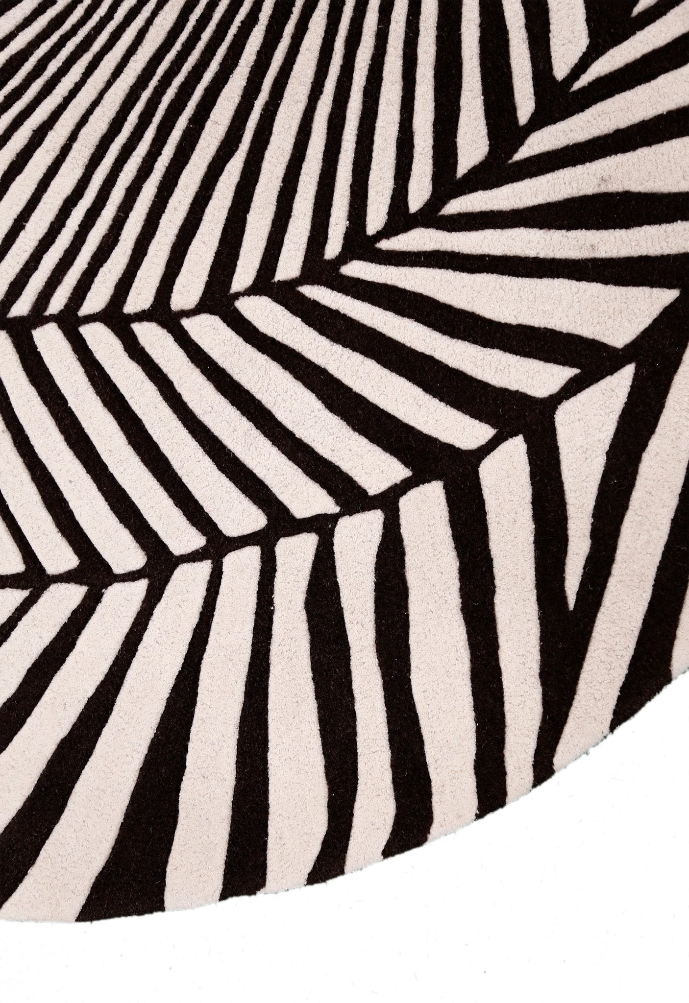 This 6x6 hand-tufted wool rug showcases a captivating zebra orbit pattern in deep black. Crafted from premium wool fibers, it offers superior durability and maintains vibrant color over time. Perfect for adding architectural interest to modern or eclectic interiors.